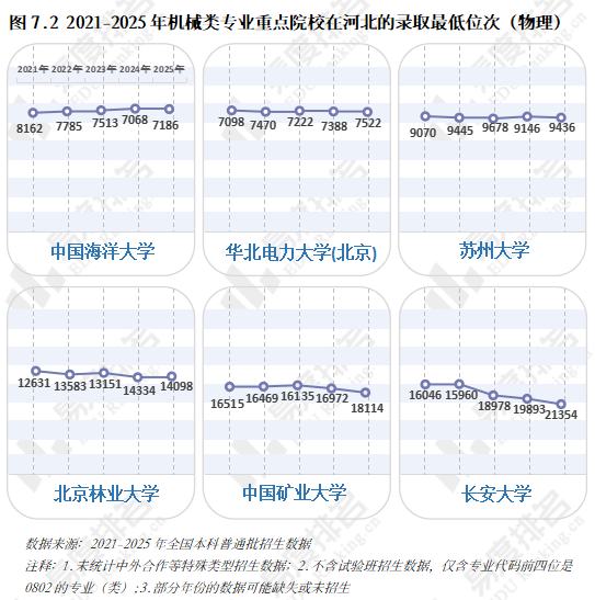从2024-2025年招生打算增幅来看,2021-2023年“三连降”,下降专业占比仅25%。985院校机械类招生人数波动式下降,打算占比连结正在5%以上,电子消息类专业则扩招最多。理科、分析科目标招生人数趋于不变,2025年共有706所院校招收该专业类。机械类专业登科分数较着上涨,能够看出各校登科位次均未呈现大的波动?